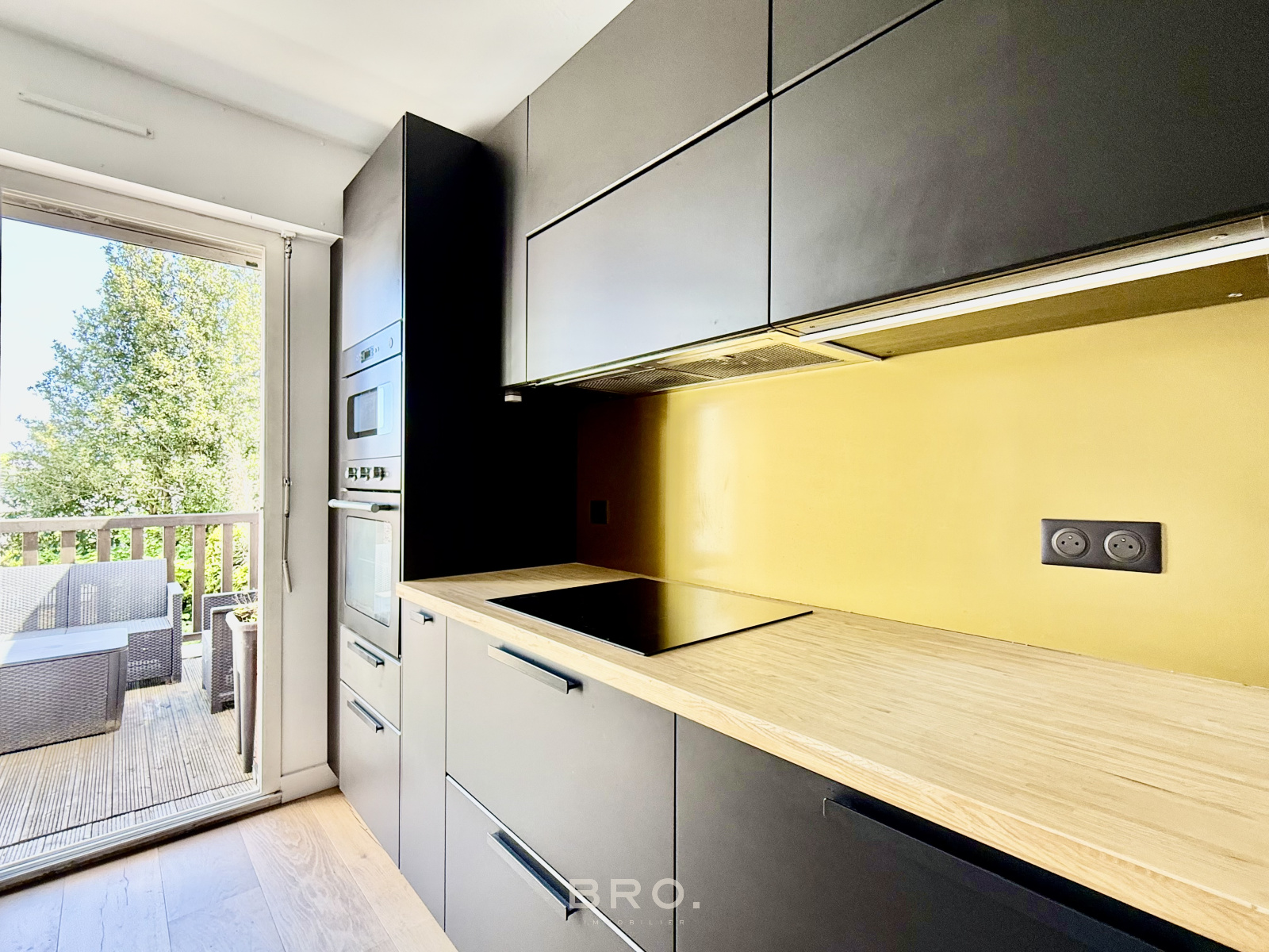 - Cuisine séparée avec crédence sur mesure, donnant sur une seconde terrasse exposée Est de 5 m²