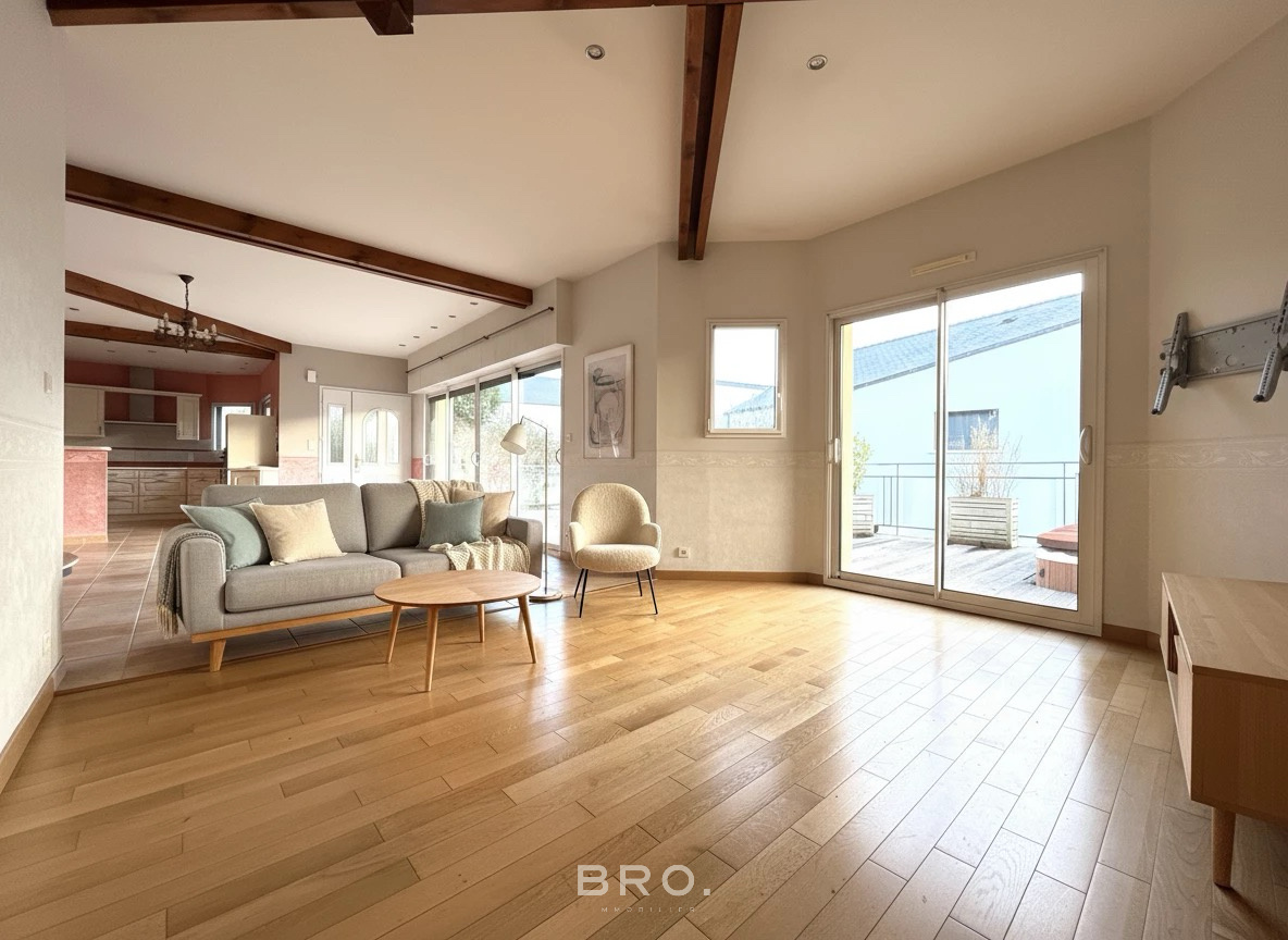 - Spacieuse pièce de vie de 65 m² exposée plein sud avec cuisine semi-ouverte